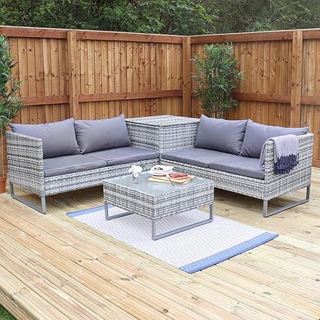 The storage bench has only one big storage capacious up to 265l. See more ideas about garden storage, garden storage units, shed storage. Ideal for casual dining in the garden or conservatory, the palma grande corner sofa set seats up to 6 people and comes with a matching. Teak & brown wicker corner sofa set with waterproof storage compartment inside both the sofa and sectional to protect. Outdoor storage should not be looking so ugly.